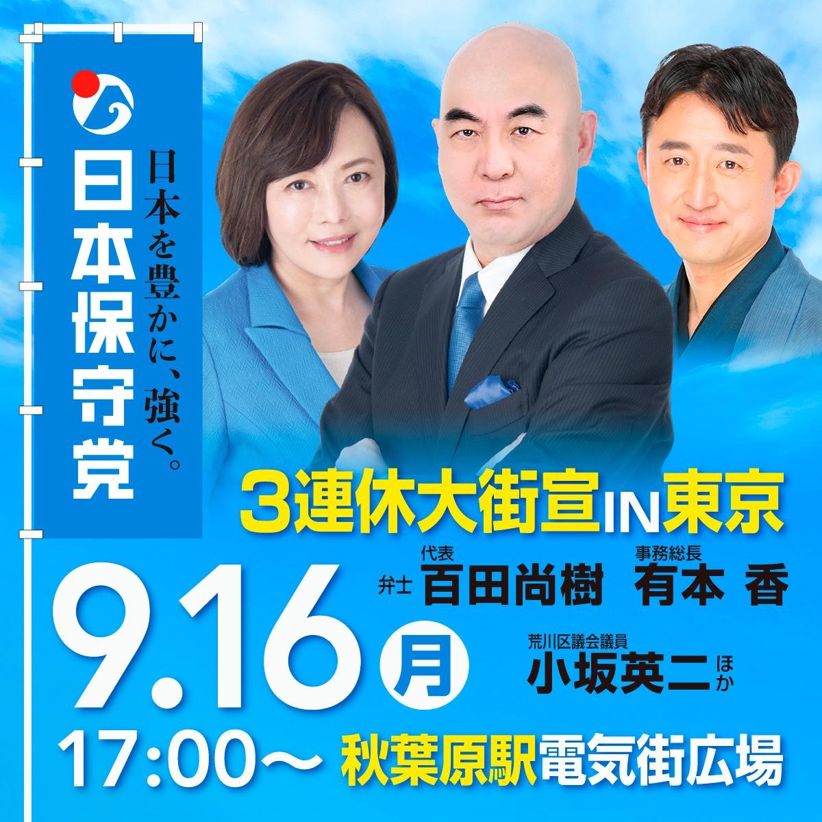 この三連休は、以下の日程で都内街宣を行います。