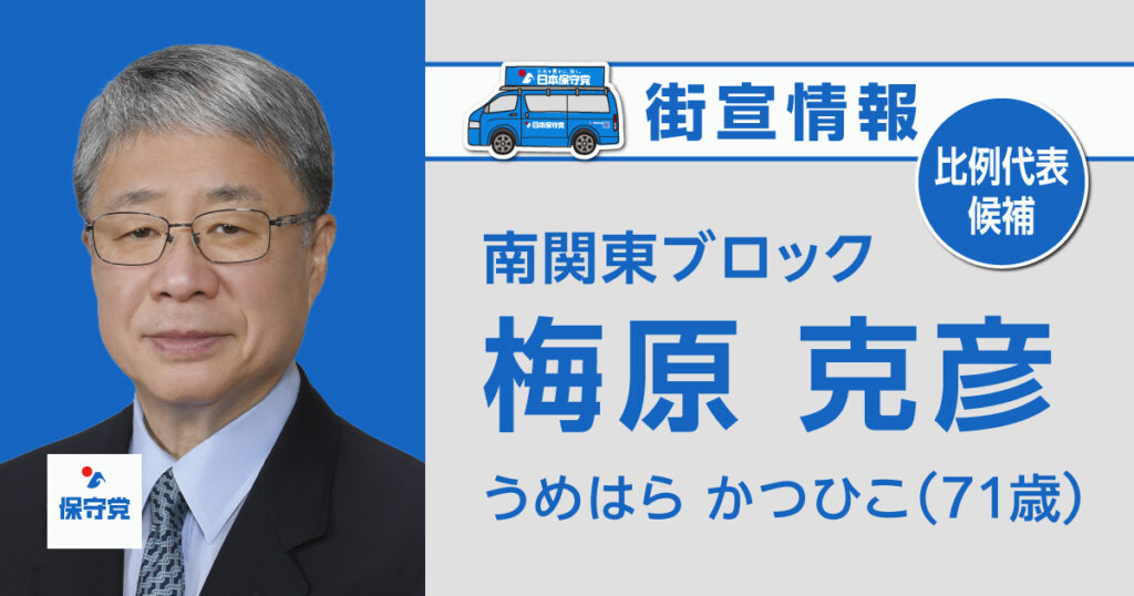 梅原 克彦 街宣情報はこちら ※移動時間や場所確保の関係上、スケジュールが変更になる場合がございます。最新情報は候補者のSNSをご確認ください。 1月27日 時間:15:00...